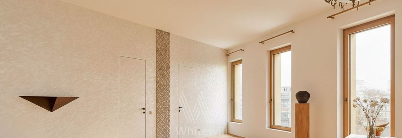 Апартаменты с двумя спальнями общей площадью 87 м² в комплексе клубных особняков "Titul на Серебрянической". Апартаменты с готовой отделкой расположены на пятом этаже в особняке 2 Florin. Интерьер оформлен в приятных светлых тонах. В отделке использованы только натуральные материалы, полы выполнены из массива дуба. Планировка: кухня-гостиная, спальня с двумя встроенными шкафами, угловая спальня с тремя окнами, один совмещённый санузел, холл. Высота потолков 3,3 метра. Из окон открывается вид в сторону набережной и во двор.