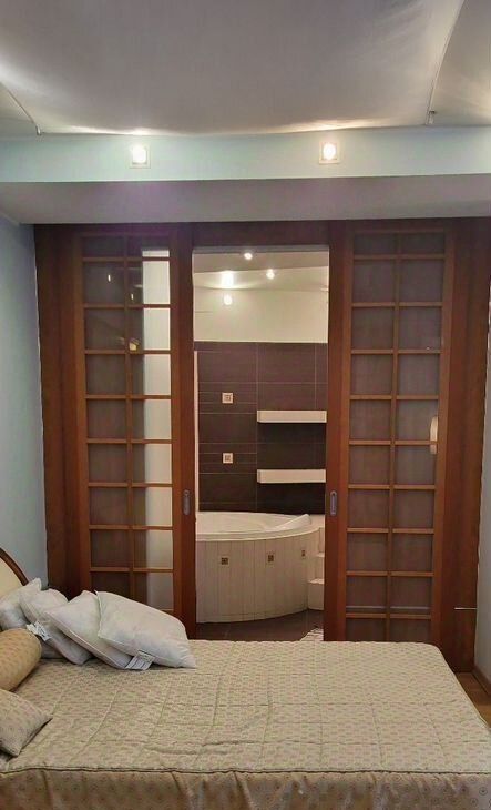 Большая спальня и еще одна небольшая комната свободного назначения. Отдельная гардеробная. Два балкона. Два смежных сан.узла.