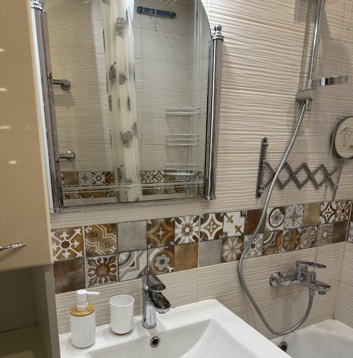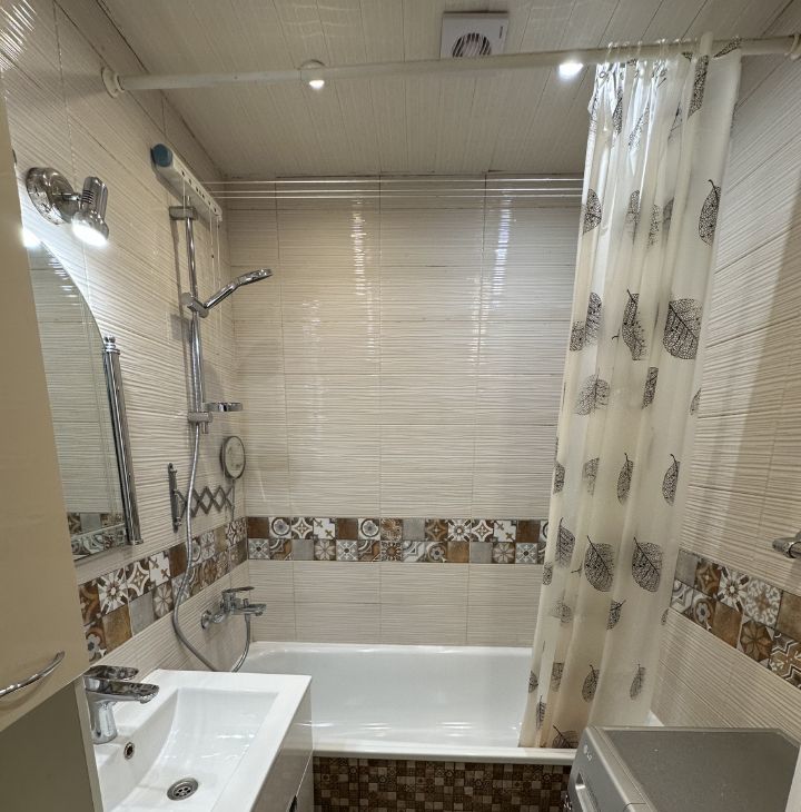 Квартира с дизайнерским ремонтом, готова к комфортному проживанию. В просторной кухне площадью 8.1 кв. м есть вся необходимая мебель и техника: холодильник, посудомоечная машина и стиральная машина. В комнатах также есть мебель, а в ванной комнате установлена ванна. Для вашего удобства в квартире установлен кондиционер и телевизор.