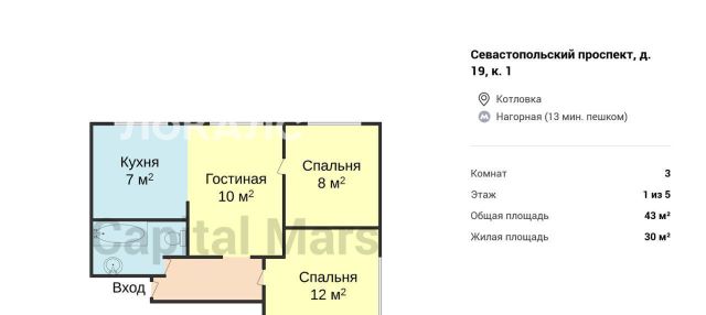 3-к кв. Москва Севастопольский просп., 19К1 (43.0 м²)
