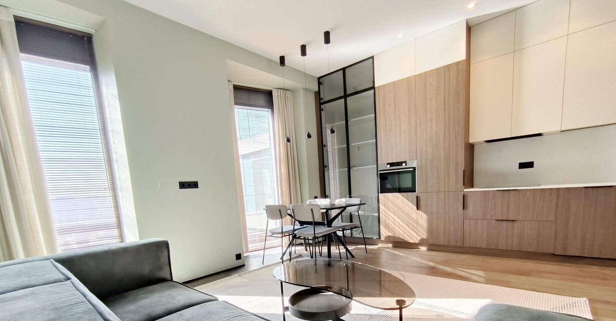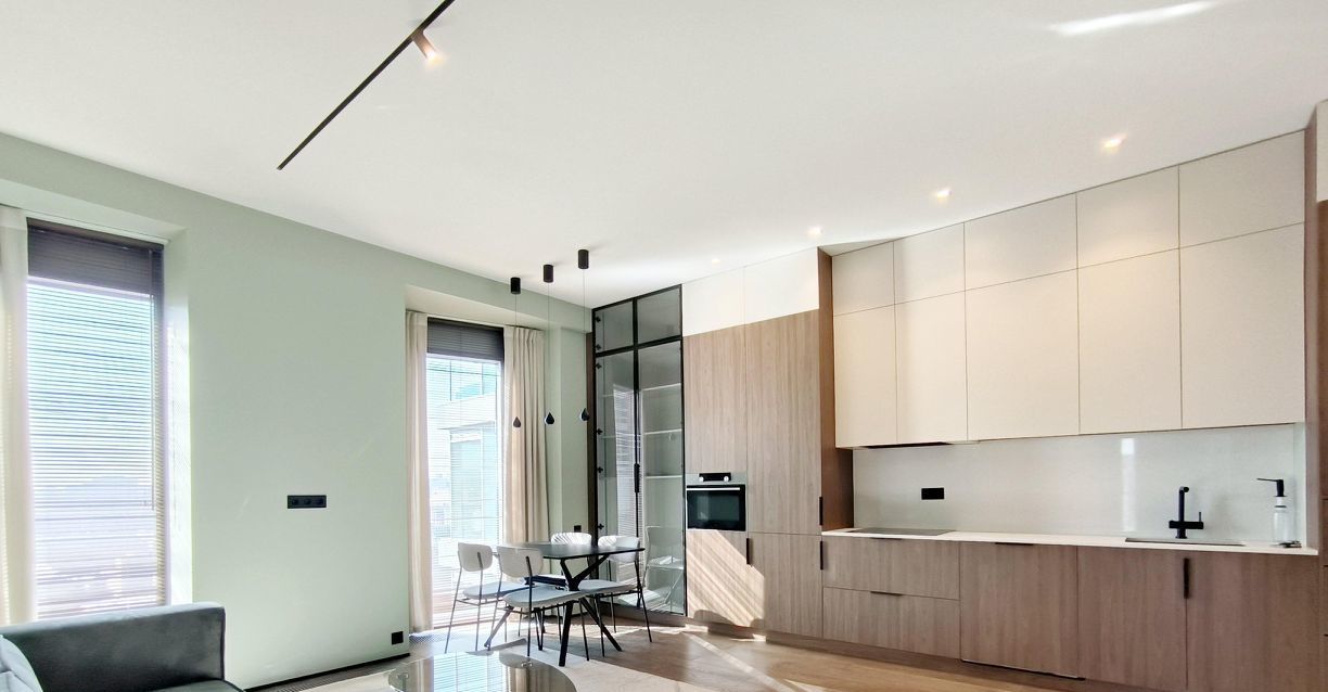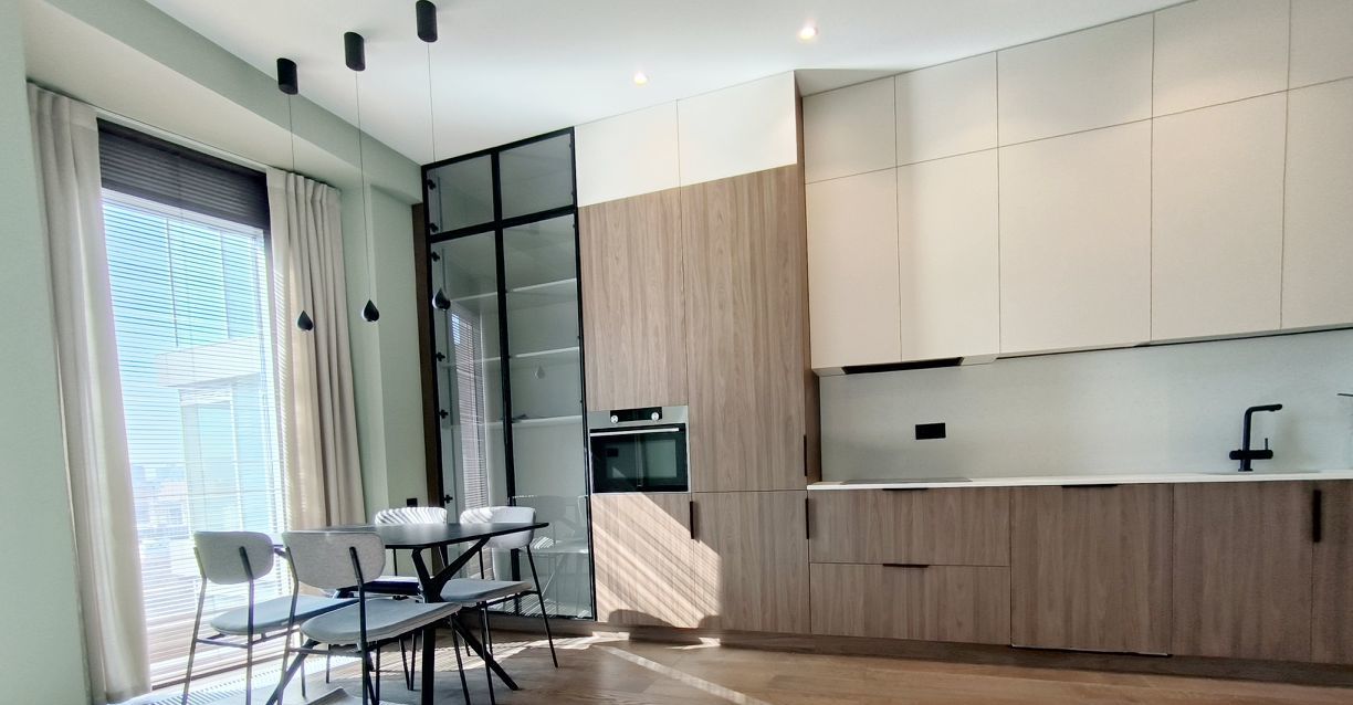 Впервые сдается роскошная квартира с отделкой дорогими материалами в доме бизнес класса. Квартира полностью укомплектована мебелью и бытовой техникой. Две спальни и просторная кухня-гостиная, наполненные воздухом и светом, панорамные окна в пол, высокие потолки 3 метра.