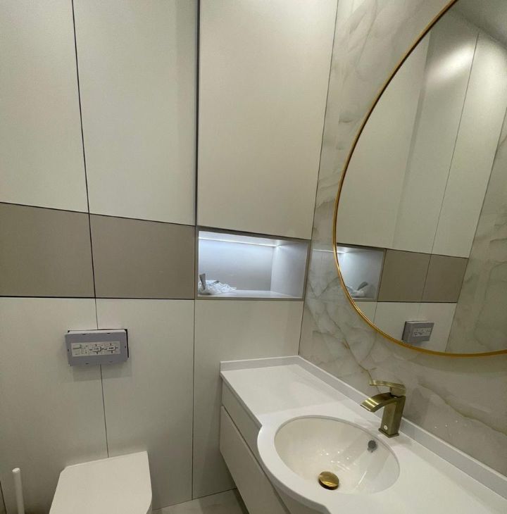 Встроенная кухня из массива, каменная столешница, духовой шкаф, плита, посудомоечная машина, стиральная и сушильная машины, встроенный холодильник. Кондиционеры в каждой комнате, теплые полы и проточный водонагреватель.