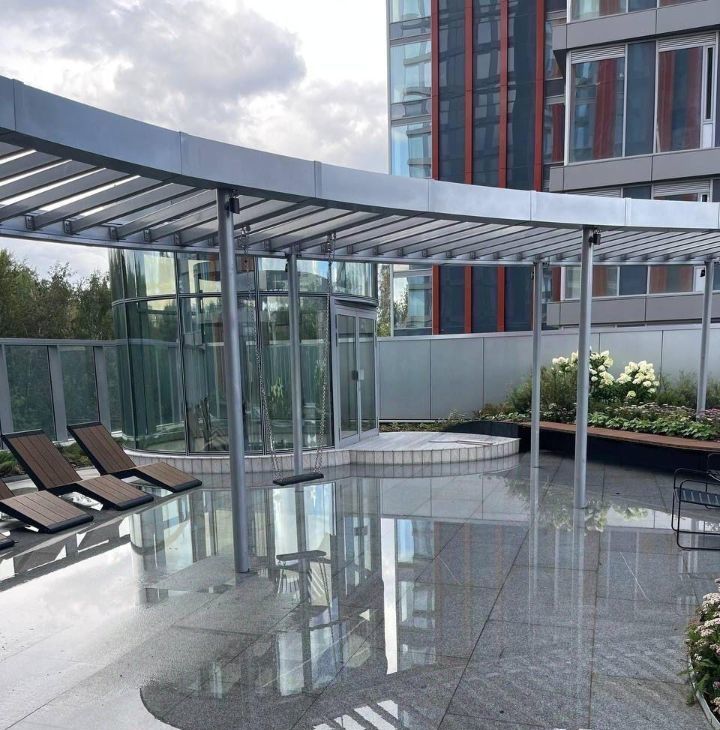 Территория комплекса огорожена и находится под круглосуточным видеонаблюдением и охраной. Проезд и проход на территорию строго по пропускам. Под домом расположен подземный паркинг, так же есть колясочная/велосипедная .