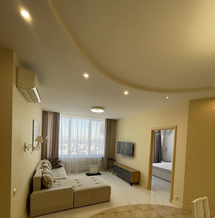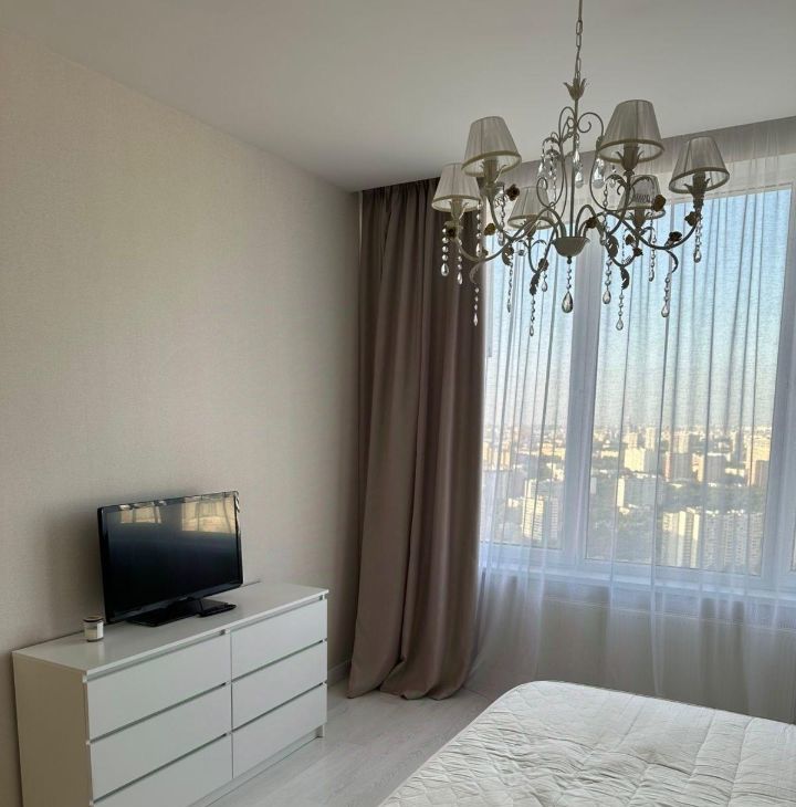 Укомплектована всей необходимой мебелью и техникой, две гардеробные комнаты, два санузла. Этаж 33 (фактически 38). Завораживающий вид на Москву.