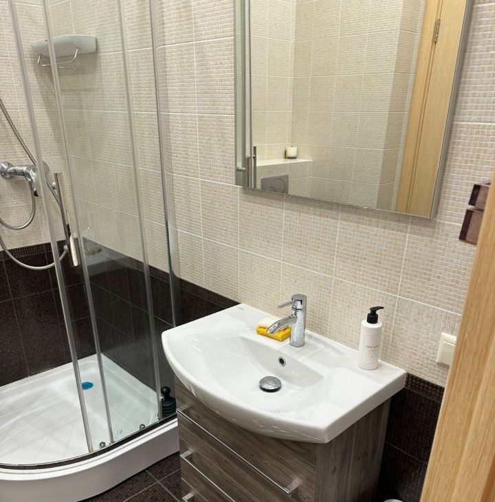 Рядом с домом метро, парк, торговый центр, фитнес, школа, детский сад, бассейн. Удобная транспортная доступность.