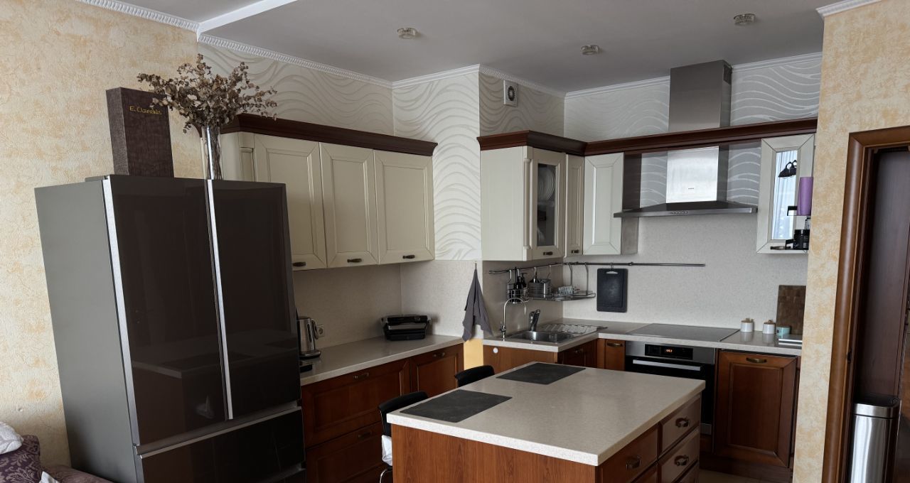 Интерьер выполнен в классическом стиле с использованием качественных материалов. Квартира полностью оснащена современной бытовой техникой и готова к проживанию.