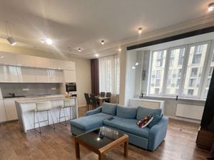 Сдаётся просторная, стильная видовая 3-х комнатная квартира с двумя большими санузлами, с панорамными окнами с красивым видом и с машиноместом 12 кв м в подземном паркинге! В квартире только закончился ремонт. Гостиная, спальня, и кухня полностью обставлены мебелью и техникой, ещё одна комната со встроенным шкафом пока без мебели (мебель обсуждается по запросу арендатора). Есть гардеробная комната. 2 просторных санузла : в первом душевая кабина, а во втором и душевая кабина и большая угловая ванная. В ежемесячный платёж 180000 руб входит оплата за квартиру вместе с машиноместом. Обеспечительный платёж в размере 180000 руб разбивается. Квартира сдаётся на длительный срок. Квартира свободна и готова к заселению. Оперативный показ. Остальные вопросы можно обсудить по телефону!