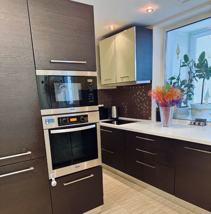 • Полностью оборудованная кухня с кастрюлями, посудой и столовыми приборами (холодильник, микроволновая печь, индукционная плита, посудомоечная машина, чайник).