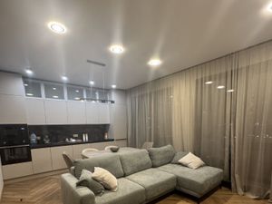 Апартамент с индивидуальным интерьерным решением в современном стиле, качественной отделкой, мебелью и техникой для жизни от ведущих брендов (Hotpoint Ariston):