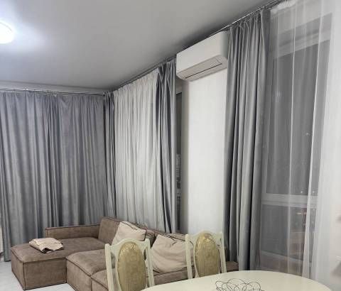 Бытовая техника: стиральная машина, холодильник, посудомоечная машина, встроенные духовой шкаф и микроволновая печь, варочная панель и вытяжка, телевизор (по запросу), кондиционер (2 шт), роутер. Просторная кухня-гостиная, спальня со встроенным шкафом, детская комната (или кабинет), гардеробная, просторный и стильный санузел. Полностью меблирована, в двух комнатах установлены кондиционеры.