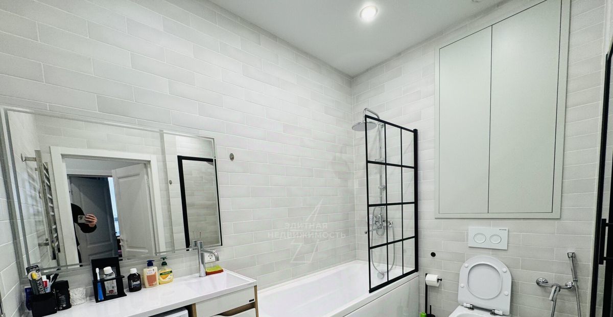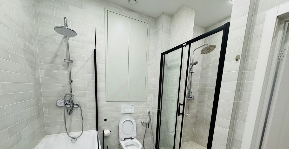 Ванная комната: оборудована ванной и душевой кабиной, современная сантехника и дизайн создают ощущение свежести и удобства.