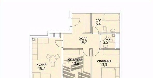3-к кв. Москва Шелепихинская наб., 34к4 (75.0 м²)