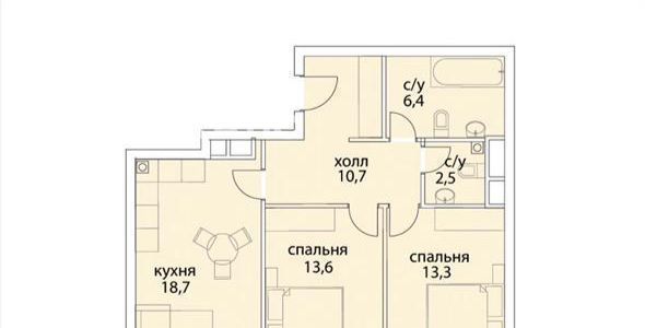 3-к кв. Москва Шелепихинская наб., 34к4 (75.0 м²)
