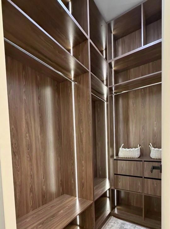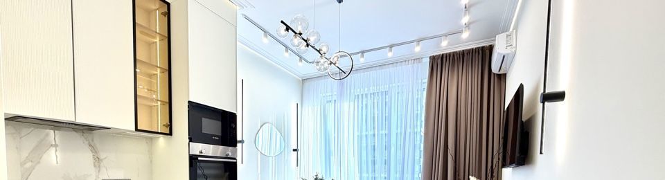 В квартире 2 изолированные комнаты и просторная кухня-гостиная, 2 большие гардеробные, просторные шкафы, вся мебель и техника.
