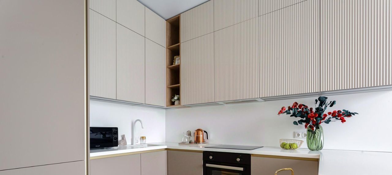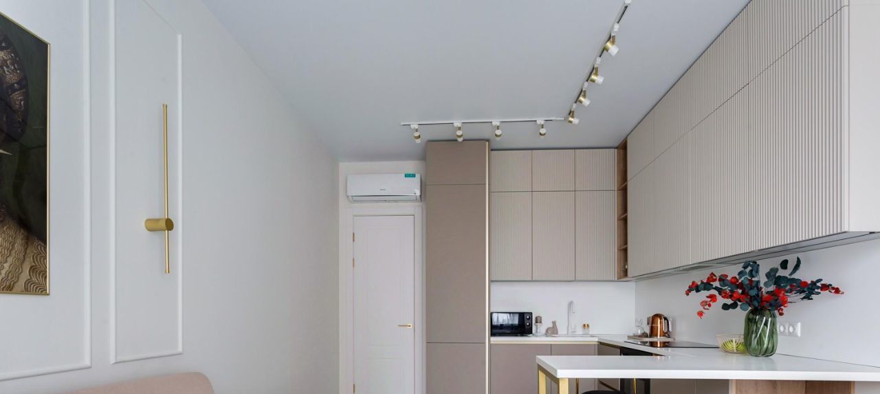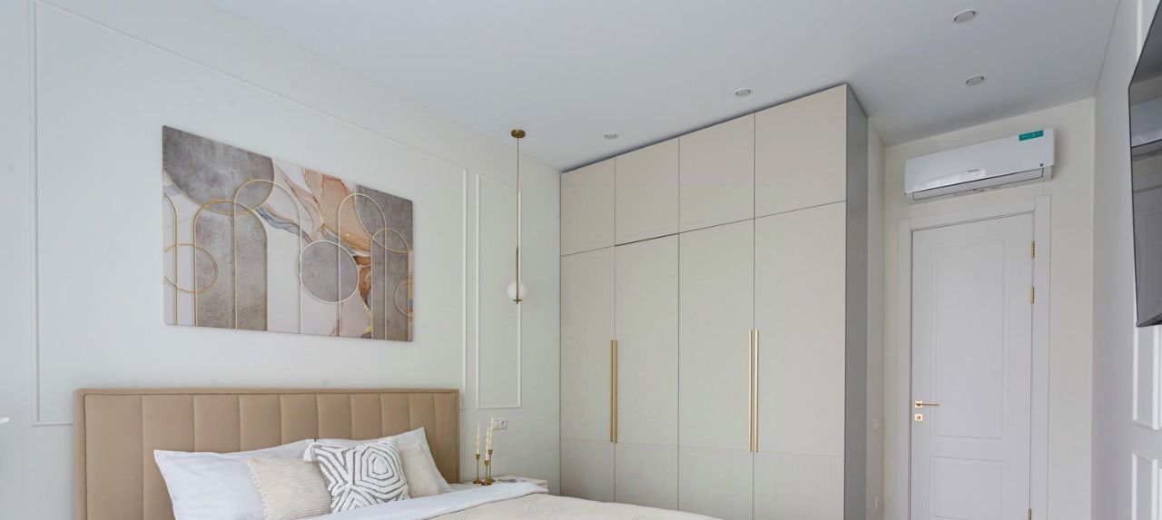 В ремонте паркет, керамогранит, мебель на заказ. Интерьер разработан с акцентом на минимализм, комфорт и тактильное качество пространства.