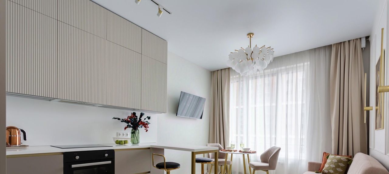 Квартира укомплектована всем необходимым, включая посудомоечную машину, стиральную и сушильную машины, кондиционеры в каждой комнате и в кухне-гостиной, спальные места, вместительные и функциональные места хранения, рабочую зону, телевизоры, теплые полы в обоих санузлах и холле, умное освещение, шторы с электроприводом, Wi-Fi.