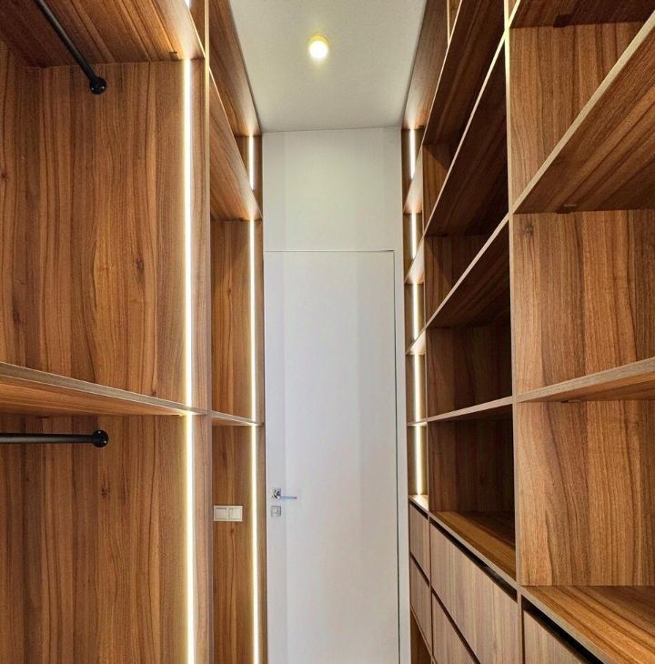 Квартиру делали для себя, продумывали всё до мелочей. Использовали только качественные экологичные материалы. Техника вся премиальная, стиральная машина, сушильная машина, посудомойка, кондиционеры, холодильник.