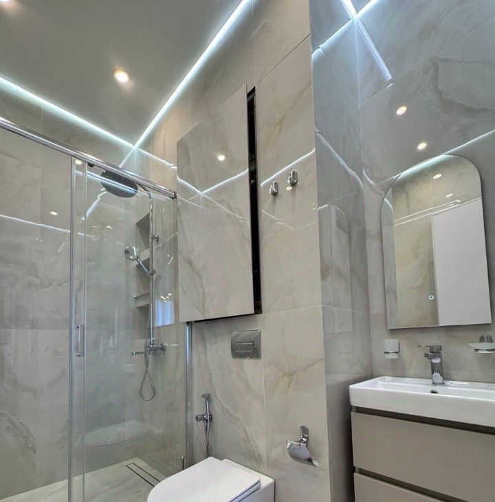 В мастер-спальне ванная ,проходящая через гардеробную, отдельно-вторая комната и прекрасная кухня-гостиная. Второй сан-узел с душевой кабиной. Много дополнительных мест хранения.