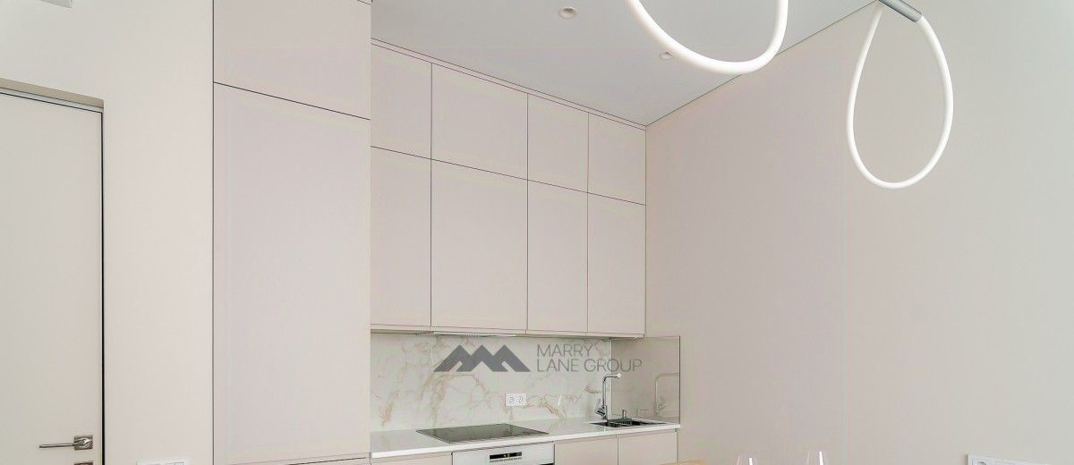 Встроенная техника: холодильник, духовой шкаф с СВЧ, варочная поверхность, стирально-сушильная и посудомоечная машина.