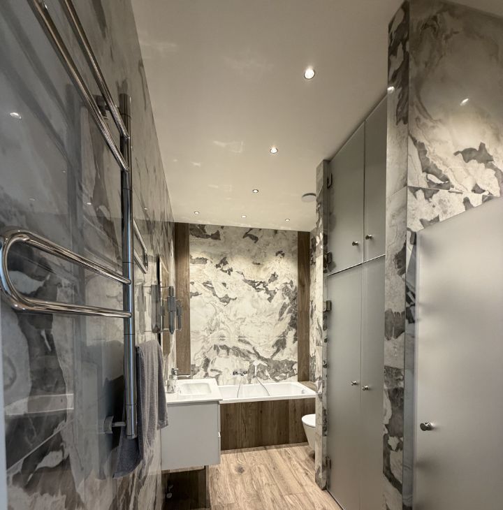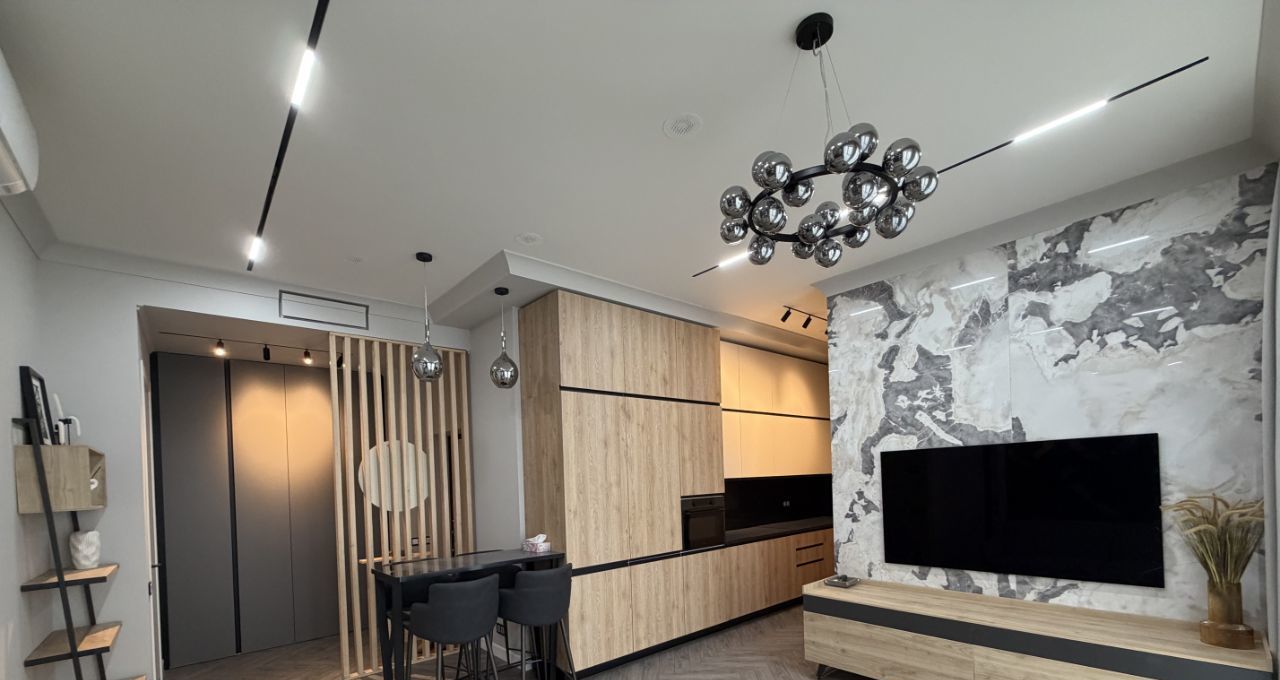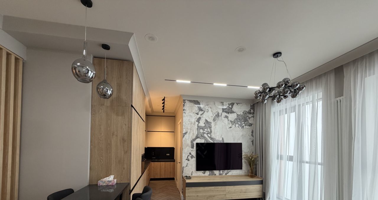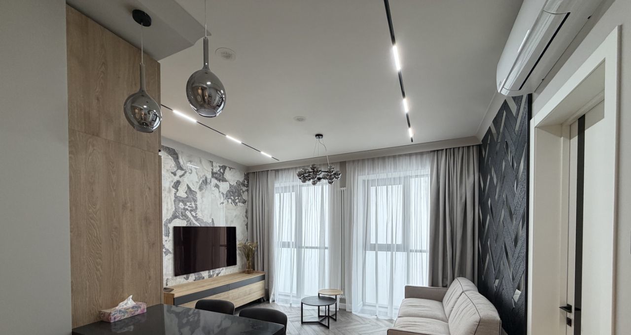 Ремонт произведен с использованием качественных дорогостоящих материалов по дизайн проекту, шумоизоляция по всему периметру квартиры включая пол и потолок, продумано все до мелочей для комфортного проживания.Функциональная планировка: две изолированные комнаты, кухня/гостиная, гардеробная, большой с/у с ванной, душем и постирочной. Вся мебель - Италия, техника Asko, установлен надежный противовзломный и противопожарный финский сейф, система кондиционирования и приточно-вытяжная вентиляция, шторы с электроприводом, качественная система водоочистки, теплый пол в с/у. Кухня полностью укомплектована техникой: варочная панель, духовой шкаф/микроволновая печь, посудомоечная машина, холодильник. Квартира сделана с заботой о Вашем комфорте, добро пожаловать!