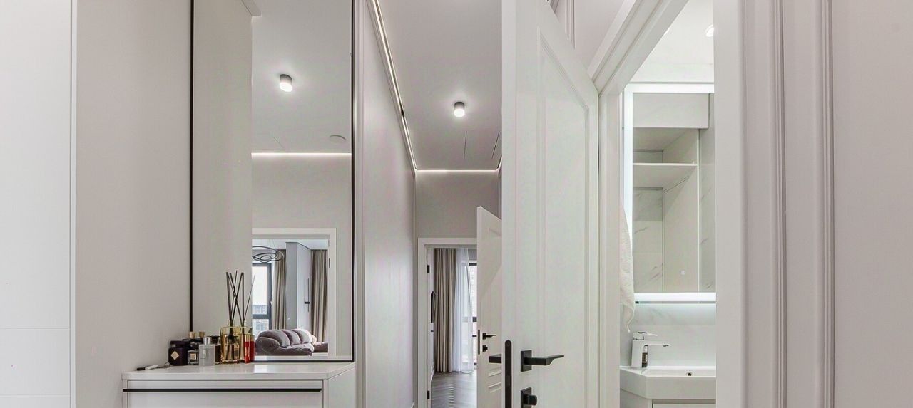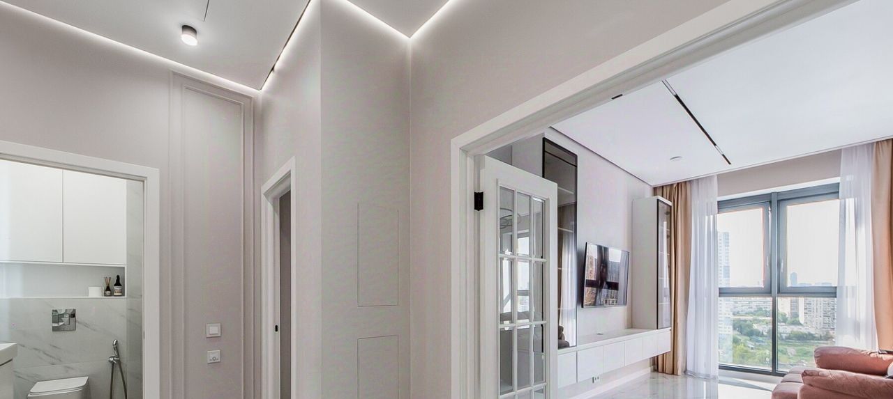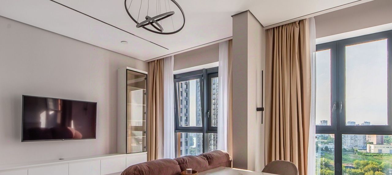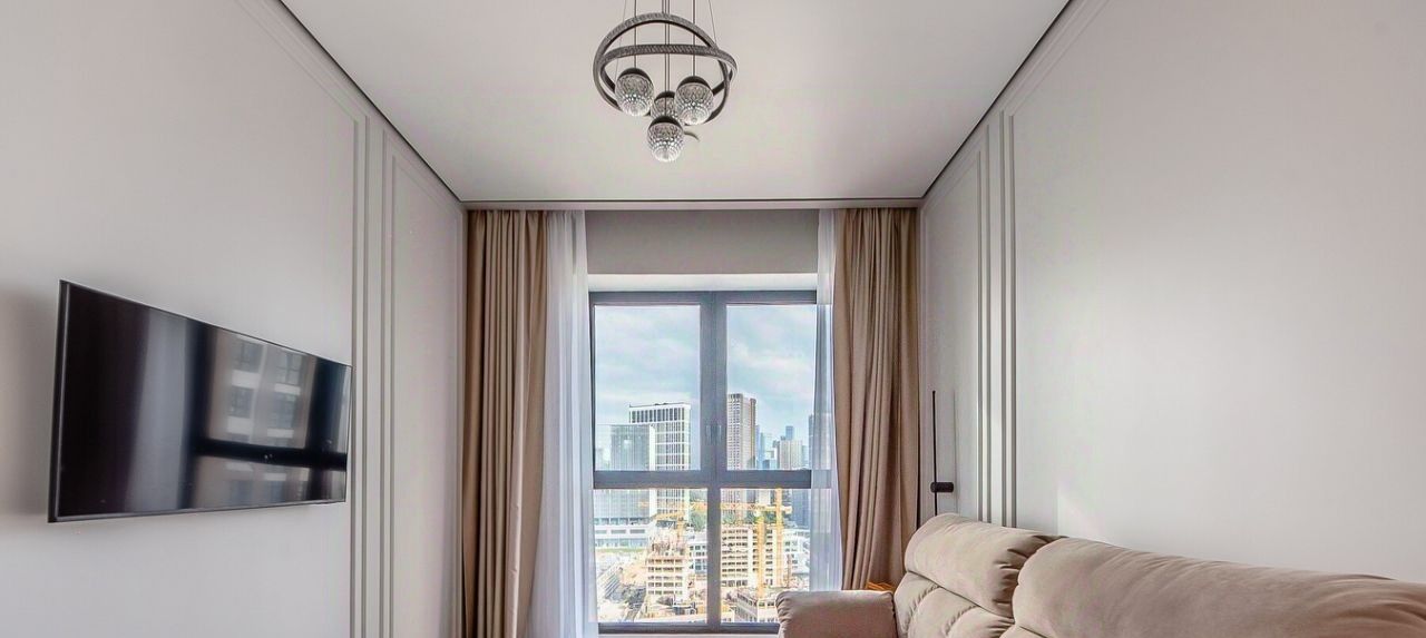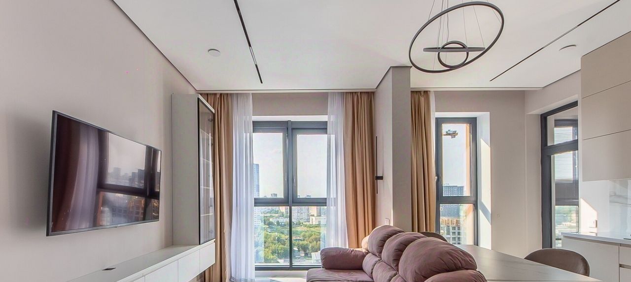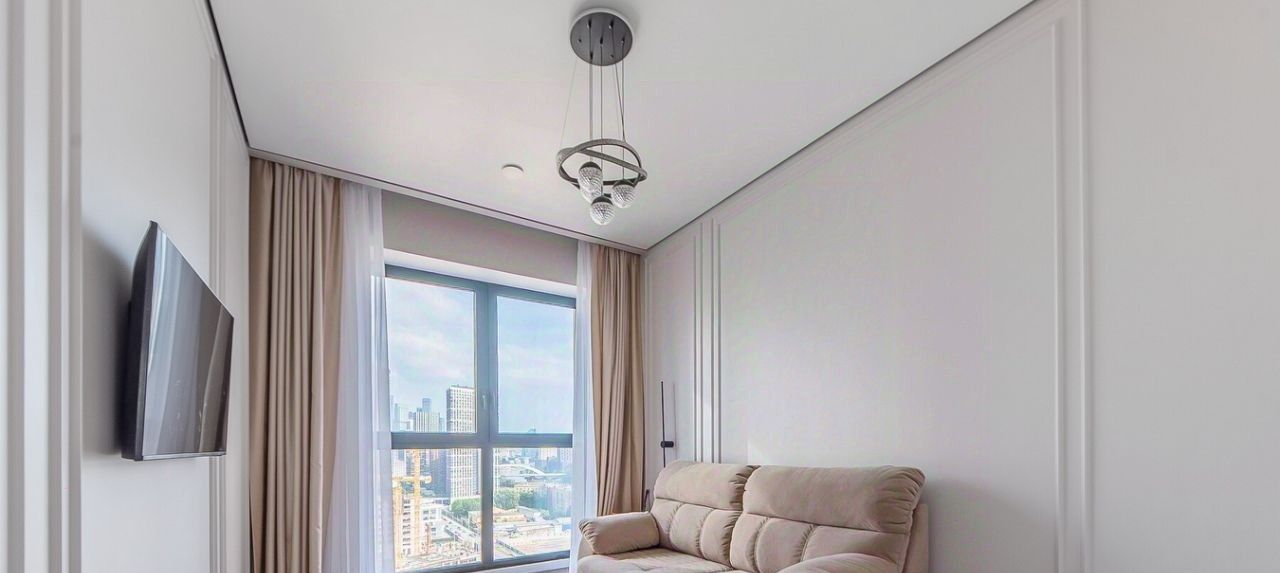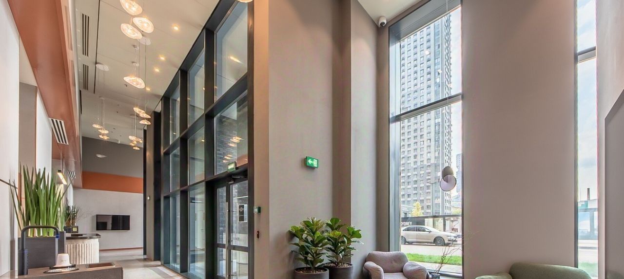 Квартира расположена на 18 этаже 24-этажного дома. Высокие потолки (3.1 метра) и окна, выходящие во двор и на Москва Сити, создают ощущение простора и уюта.