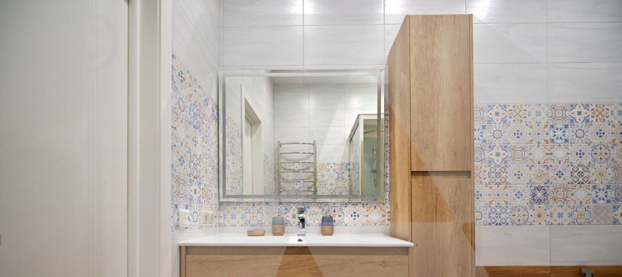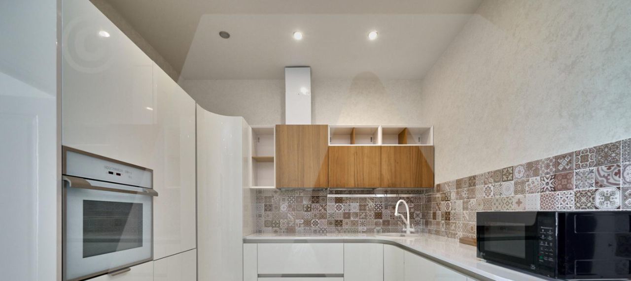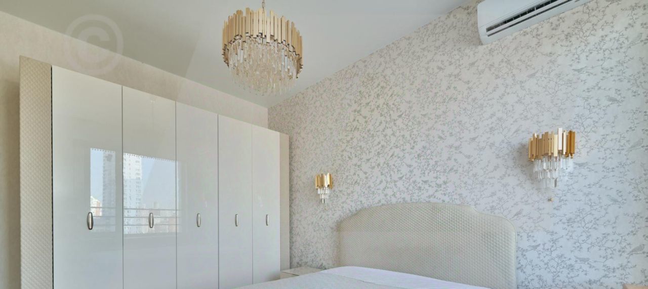 Квартира укомплектована всей необходимой мебелью и техникой, установлены: стиральная машина Bosch, микроволновая печь, посудомоечная машина, духовой шкаф, большой телевизор в гостиной, гигиенический душ, кондиционирование воздуха в спальне и гостиной.