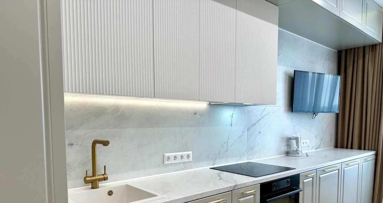 Кухня с дорогой встроенной техникой. Спальня и гостиная со всей необходимой мебелью.
