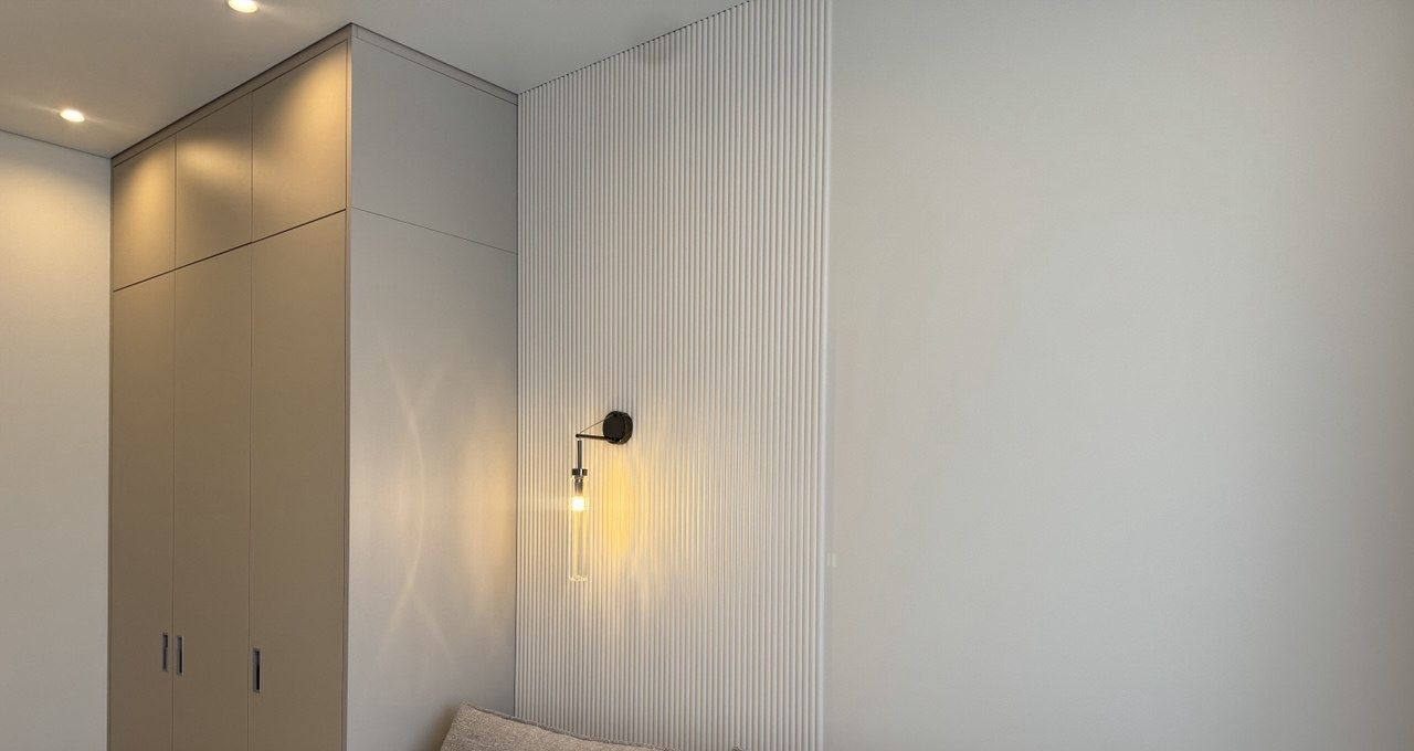 Квартира светлая, с современной отделкой. В гостиной — место для совместного отдыха, в спальнях — тишина и покой. С видом на реку.
