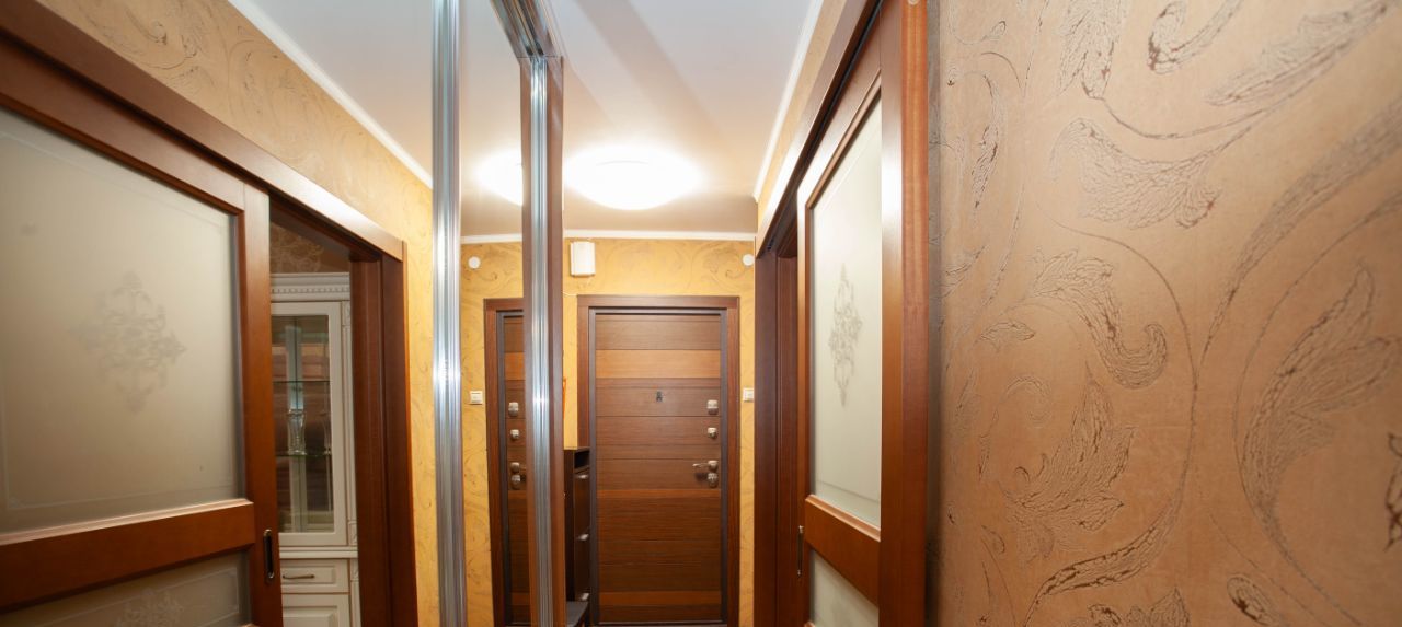 В коридоре также шкаф-купе зеркальный.
