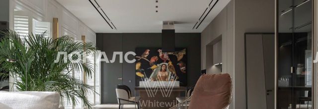 Стены украшены молдингами, картинами и эффектными светильниками, на окнах установлены стильные белые ставни-шаттерсы, а ковры на полу добавляют уюта и тепла. Кухня укомплектована гарнитуром Poliform и всей необходимой техникой, предусмотрены шкафы Rimadesio, смесители Gessi и дизайнерская кровать Baxter.