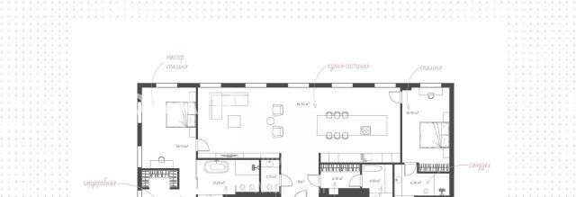 Планировка включает просторную гостиную с кухонной и обеденной зонами, лаунжем с мягким диваном и креслом, мастер-спальню с гардеробной и ванной комнатой, вторую спальню с санузлом, гардеробную комнату с постирочной зоной, холл и гостевой санузел. Дополнительно можно приобрести одно машино-место в подземном паркинге.