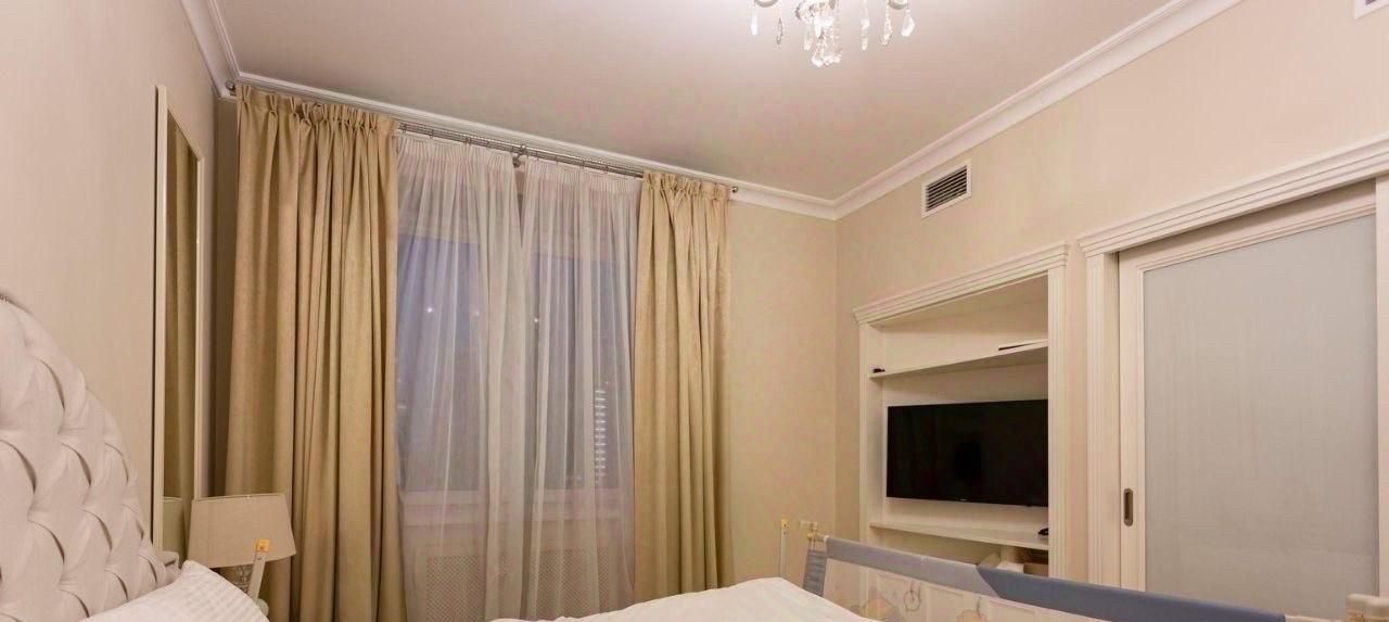 Предлагаем в аренду стильную трехкомнатную квартиру в современном доме 2008 года постройки. Квартира находится на 9 этаже 18-этажного монолитного здания, общей площадью 113 кв. м. Высокие потолки 3 метра создают ощущение простора. До станции метро Москва-Сити всего 12 минут пешком.