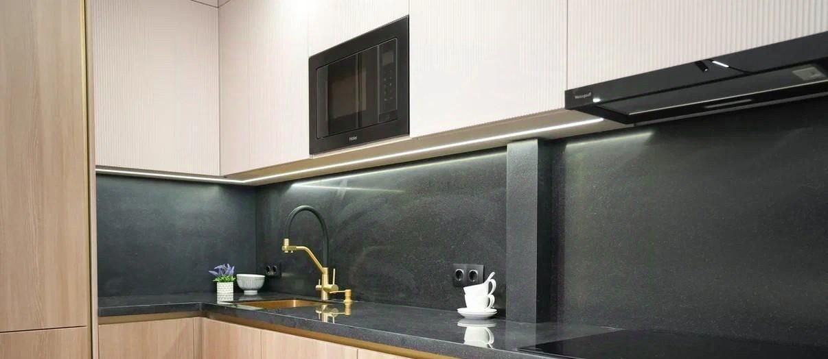Техника: стиральная машина, духовой шкаф, посудомоечная машина, вытяжка, микроволновая печь.