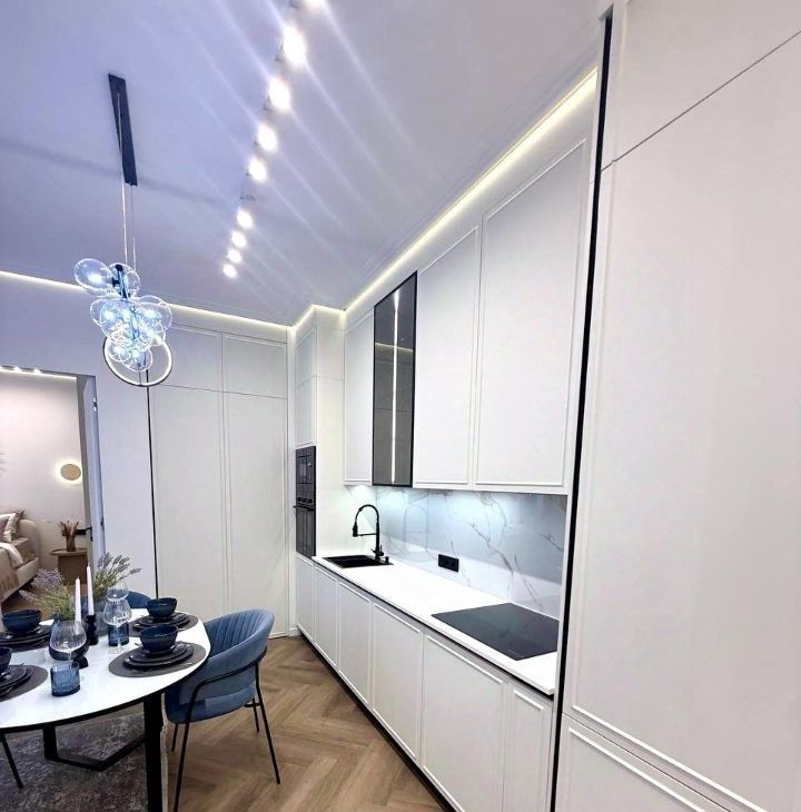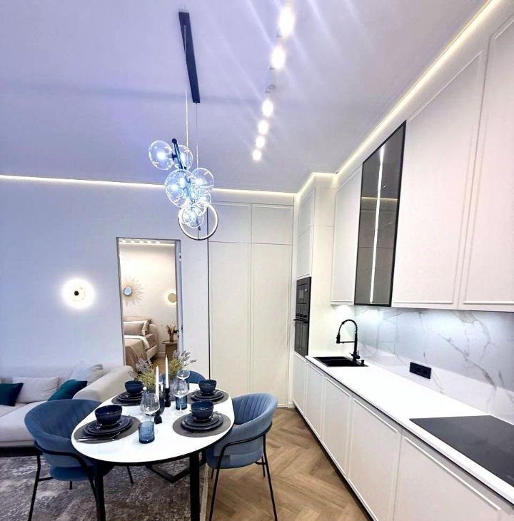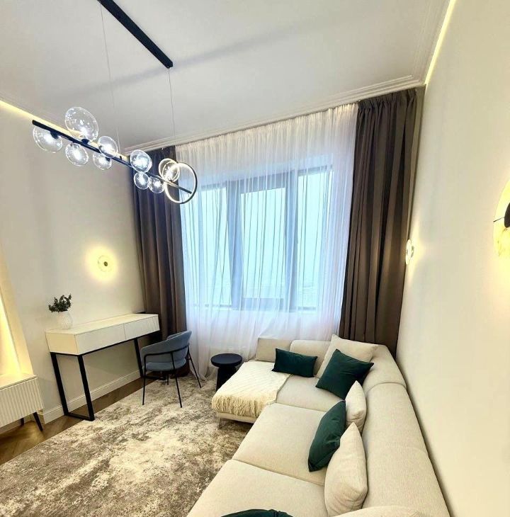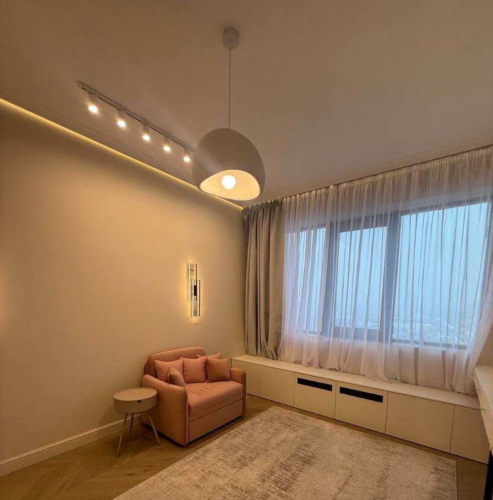 Продается стильная трехкомнатная квартира в Москве на Шмитовском проезде, дом 39к6. Общая площадь составляет 67 кв. м, жилая — 35 кв. м, а просторная кухня занимает 27 кв. м. Квартира находится на 31 этаже современного 51-этажного дома 2025 года постройки. Высокие потолки в 3 метра и окна, выходящие во двор, придают помещению ощущение простора и уюта. До метро "Шелепиха" всего 5 минут пешком.