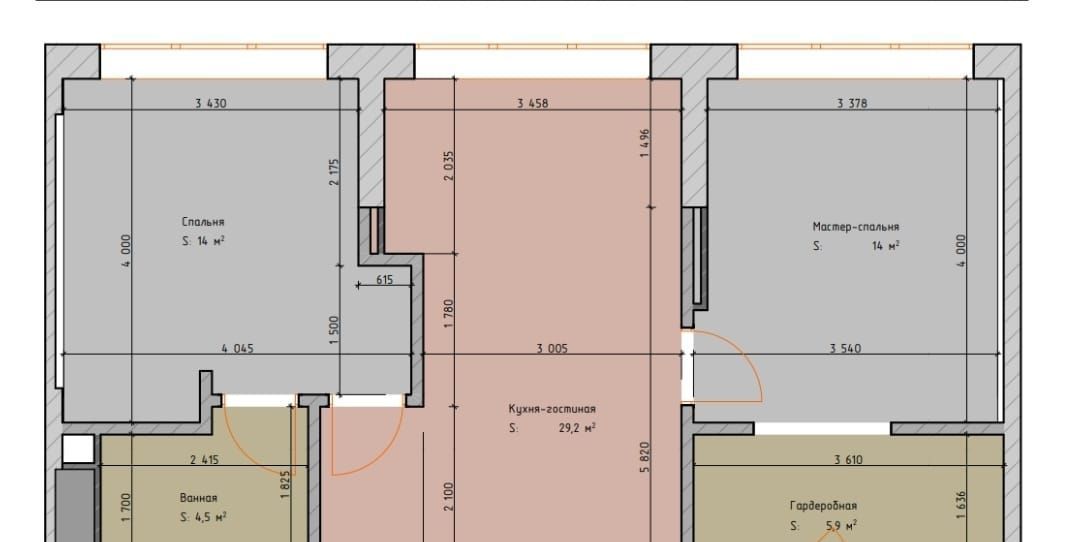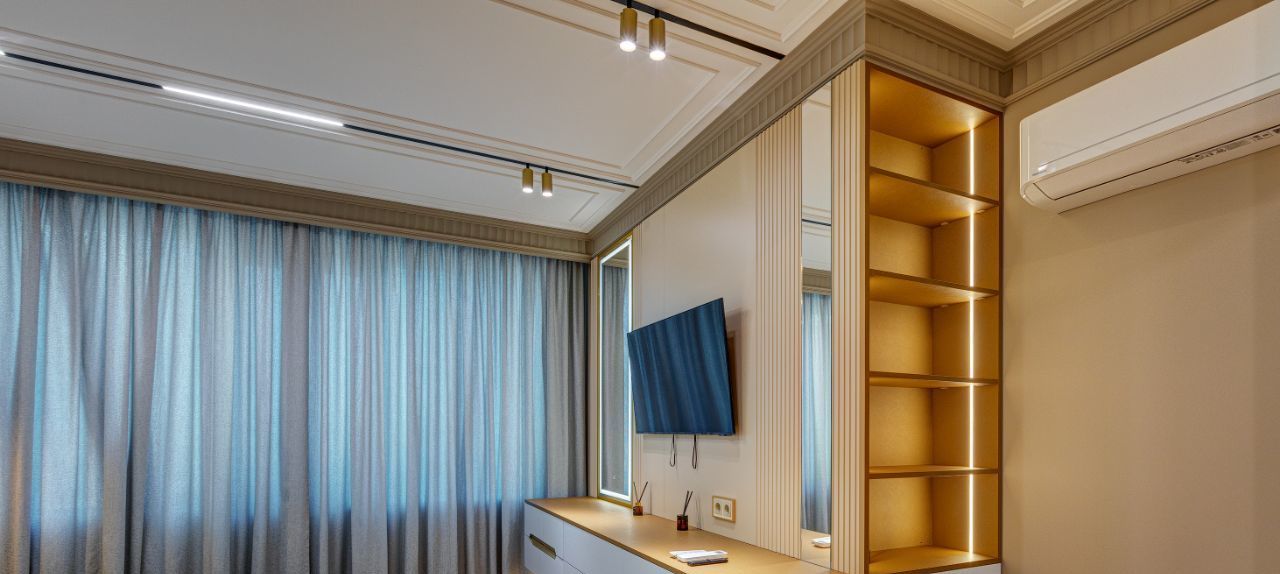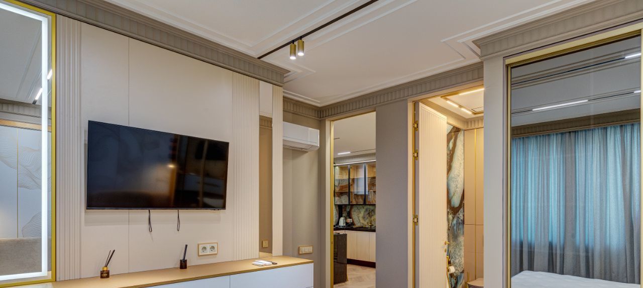 Квартира представляет собой пространство площадью 84 кв.м., состоящее из большой кухни-гостиной 28 кв.м, двух спален по 14 кв.м, двух полноценных ванных комнат, гардеробной. Все выполнено в современной стиле в соответствии эстетическим тенденциям современности.