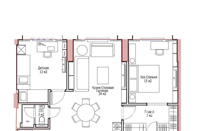 Самая лучшая планировка в ЖК бизнес-класса Headliner: изолированные спальни, два санузла, гардеробная, просторная кухня-гостинная. Отсутствие бесполезных коридоров, съедающих пространство.