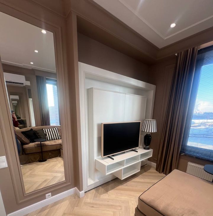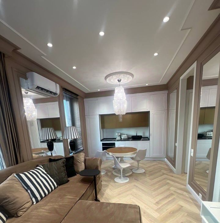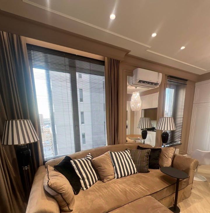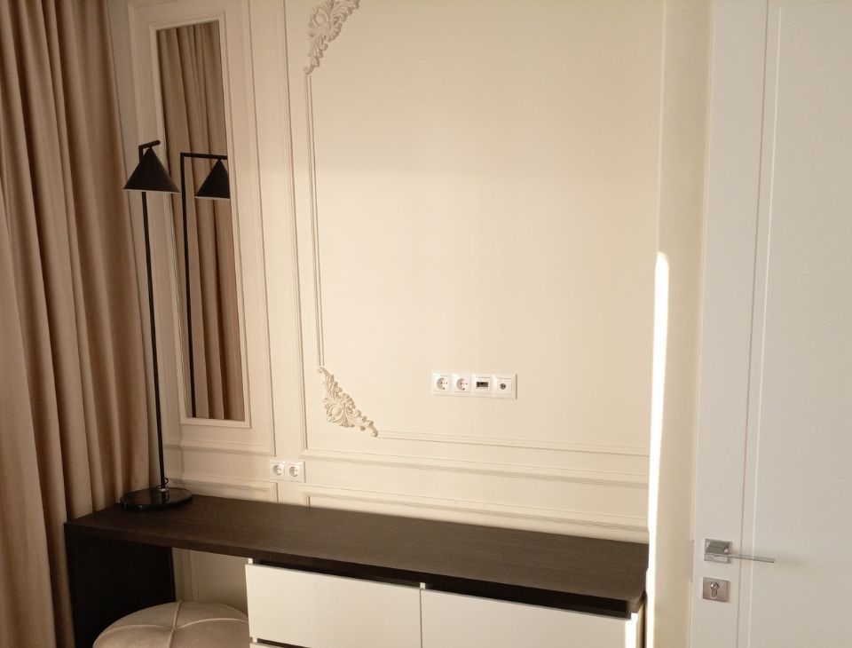 В квартире сделан дизайнерский ремонт, который сразу создаёт атмосферу уюта и современности! Мебель есть на кухне и в комнатах, что позволит вам сразу заселиться. Кухня оснащена всей необходимой техникой: холодильник, посудомоечная машина, мульти-шеф, духовая/микроволновая печь, кофемашина! Кондиционеры на кухне и в спальне! В наличии также стиральная/сушильная машина и телевизор! Два совмещённых санузла, один из которых оборудован ванной, добавляют комфорта!