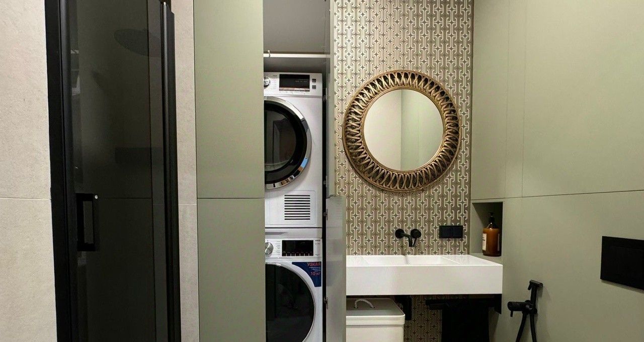 1 совмещенный санузел (всего в квартире два санузла: 1- гостевой/1- в основной спальне) и прачечная.