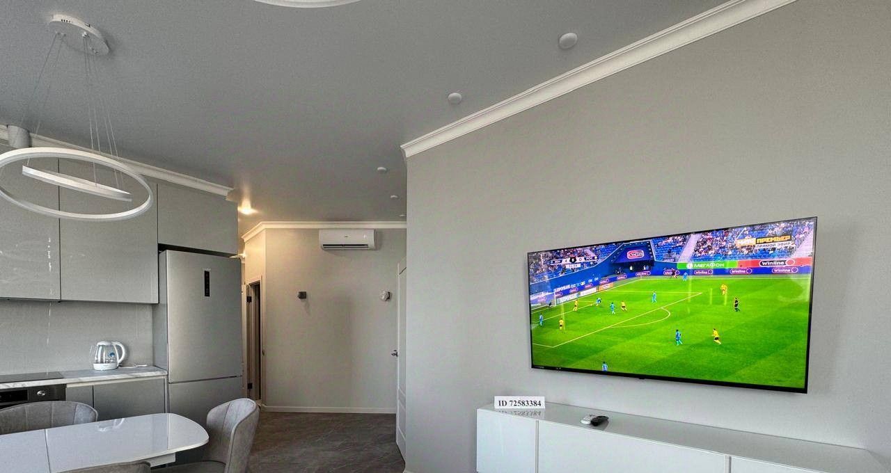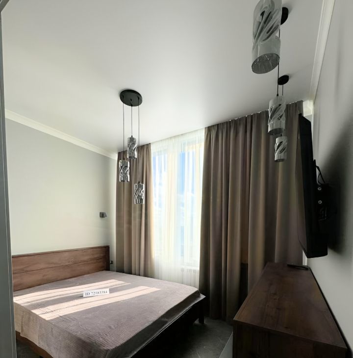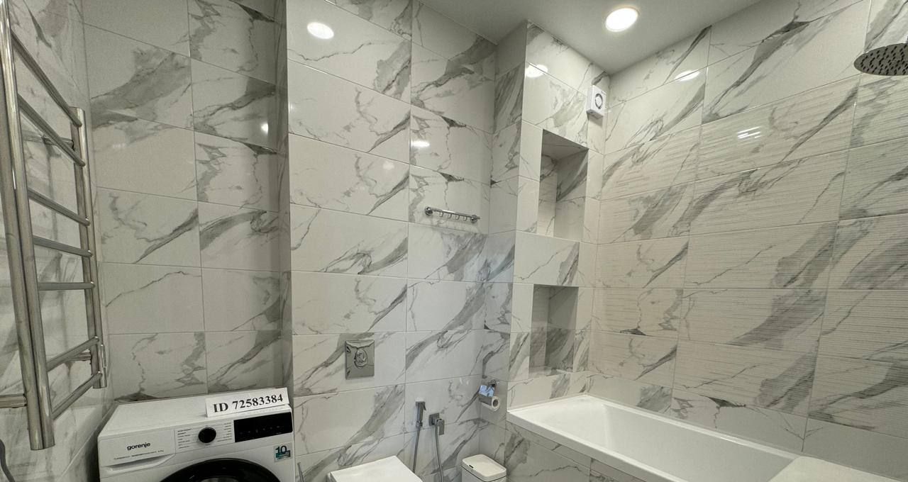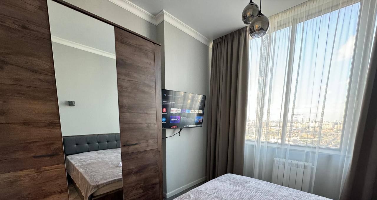 В квартире сделан евроремонт, поэтому можно сразу заехать и наслаждаться комфортом. Просторная кухня оснащена современной мебелью и всей необходимой техникой: кондиционер, посудомоечная машина, холодильник, стиральная машина и телевизор. В комнате также есть мебель, что делает квартиру полностью готовой для проживания. Санузел совмещенный, оборудован ванной.