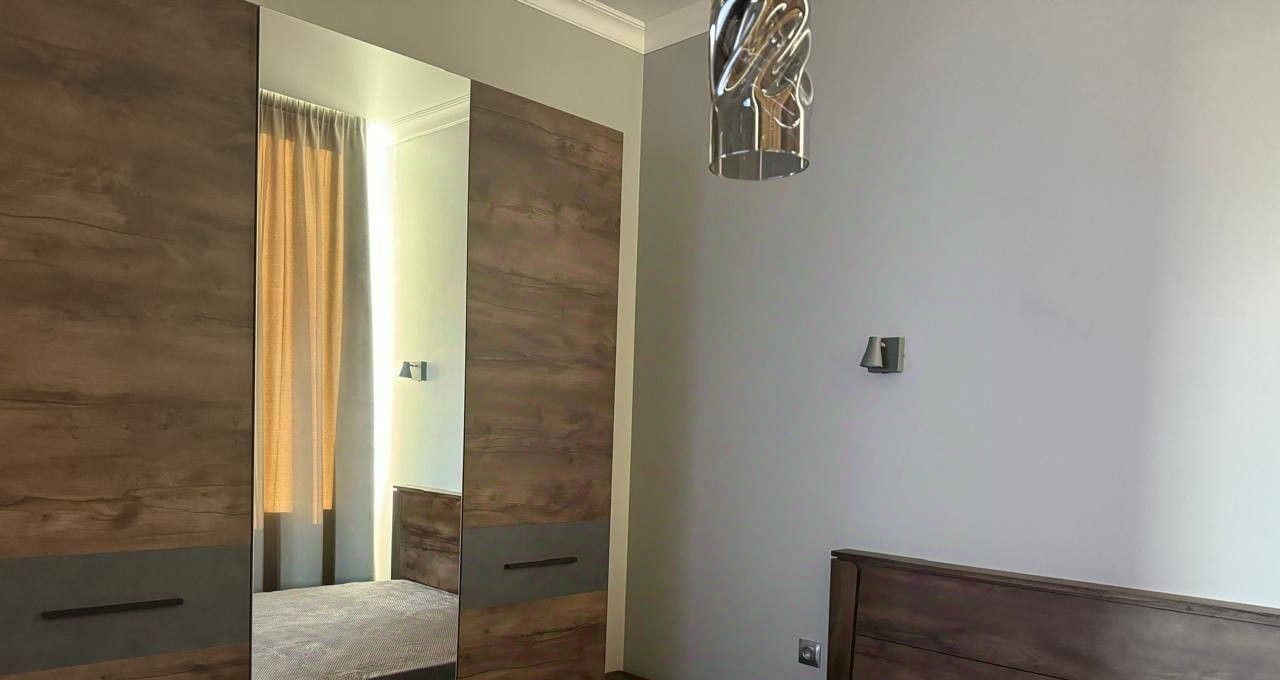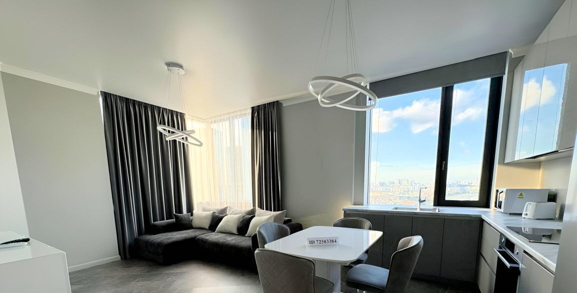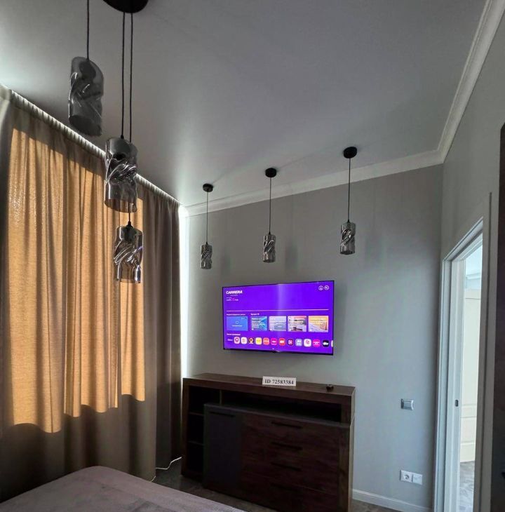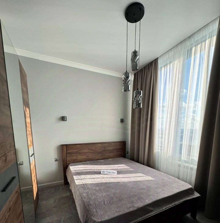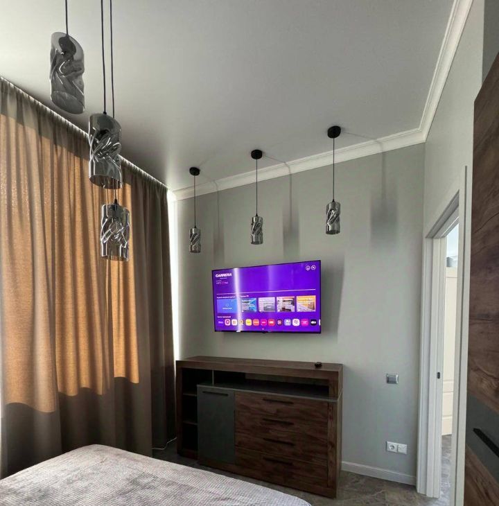В квартире сделан евроремонт, поэтому можно сразу заехать и наслаждаться комфортом. Просторная кухня оснащена современной мебелью и всей необходимой техникой: кондиционер, посудомоечная машина, холодильник, стиральная машина и телевизор. В комнате также есть мебель, что делает квартиру полностью готовой для проживания. Санузел совмещенный, оборудован ванной.