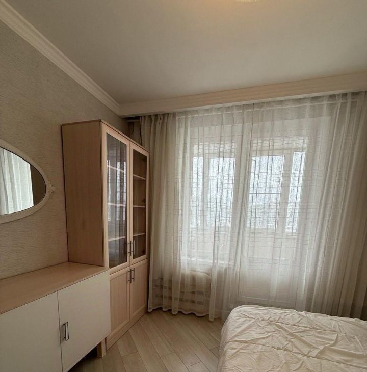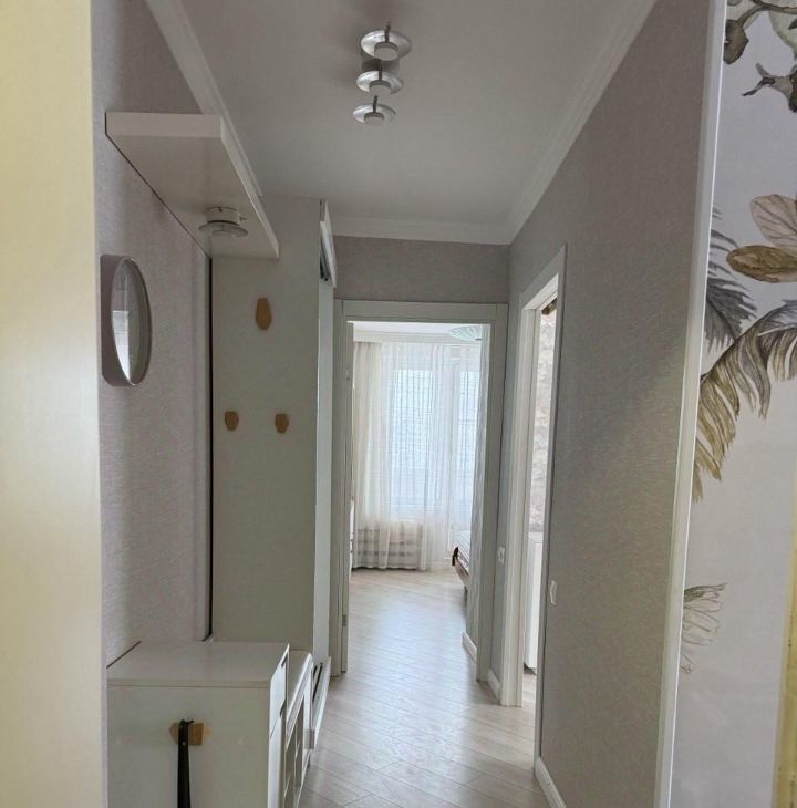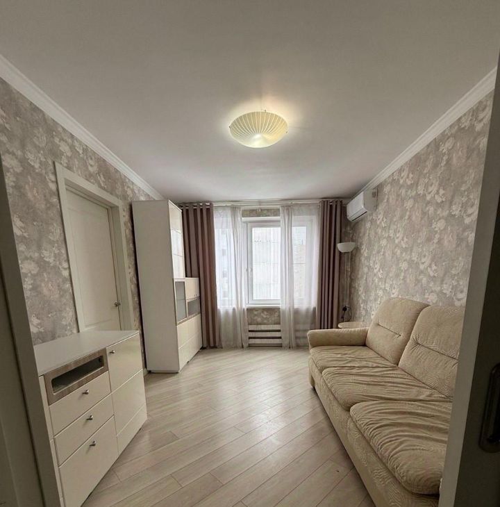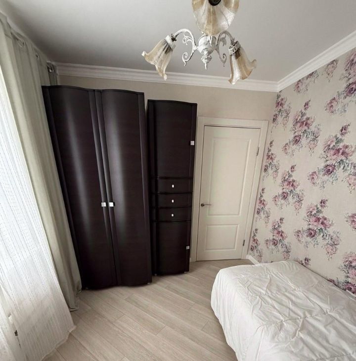 Удобная смежно-изолированная планировка с гостиной и двумя спальнями. Совмещённый санузел оборудован душевой кабиной.