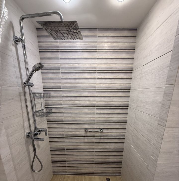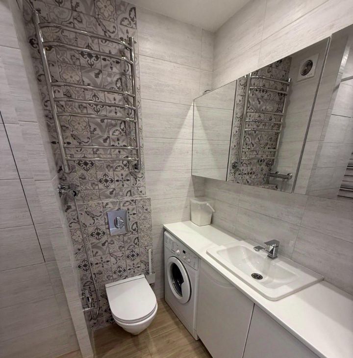 В квартире сделан современный евроремонт. Установлена вся необходимая техника: кондиционер, холодильник, посудомоечная машина, стиральная машина и телевизор.
