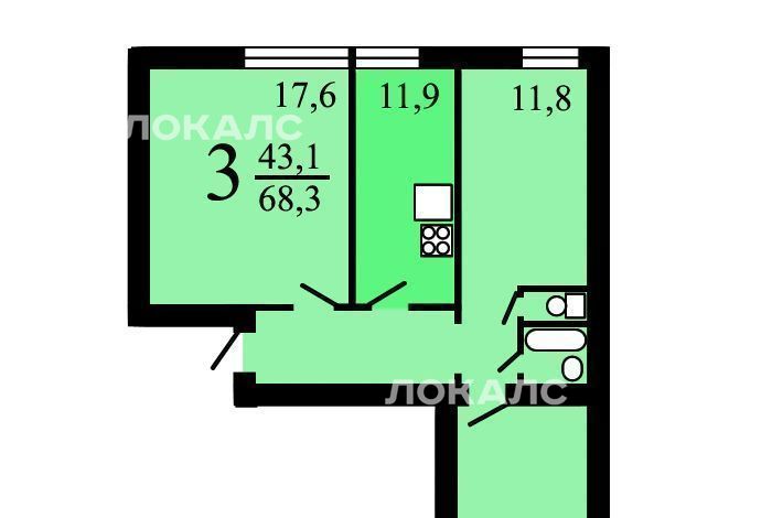 3-к кв. Москва Сивашская ул., 4К1 (66.2 м²)