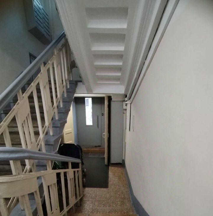 Высокий первый этаж, двойная входная дверь, тихий дворик, спокойные, приятные соседи.