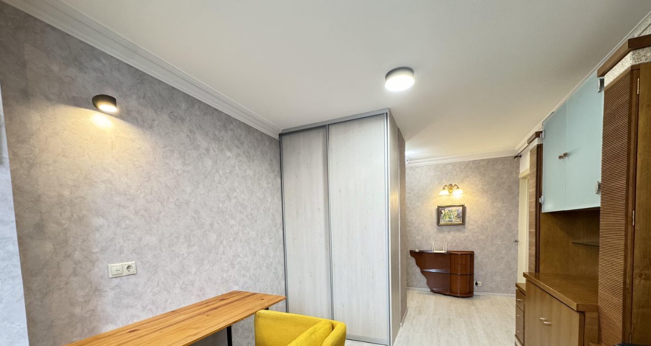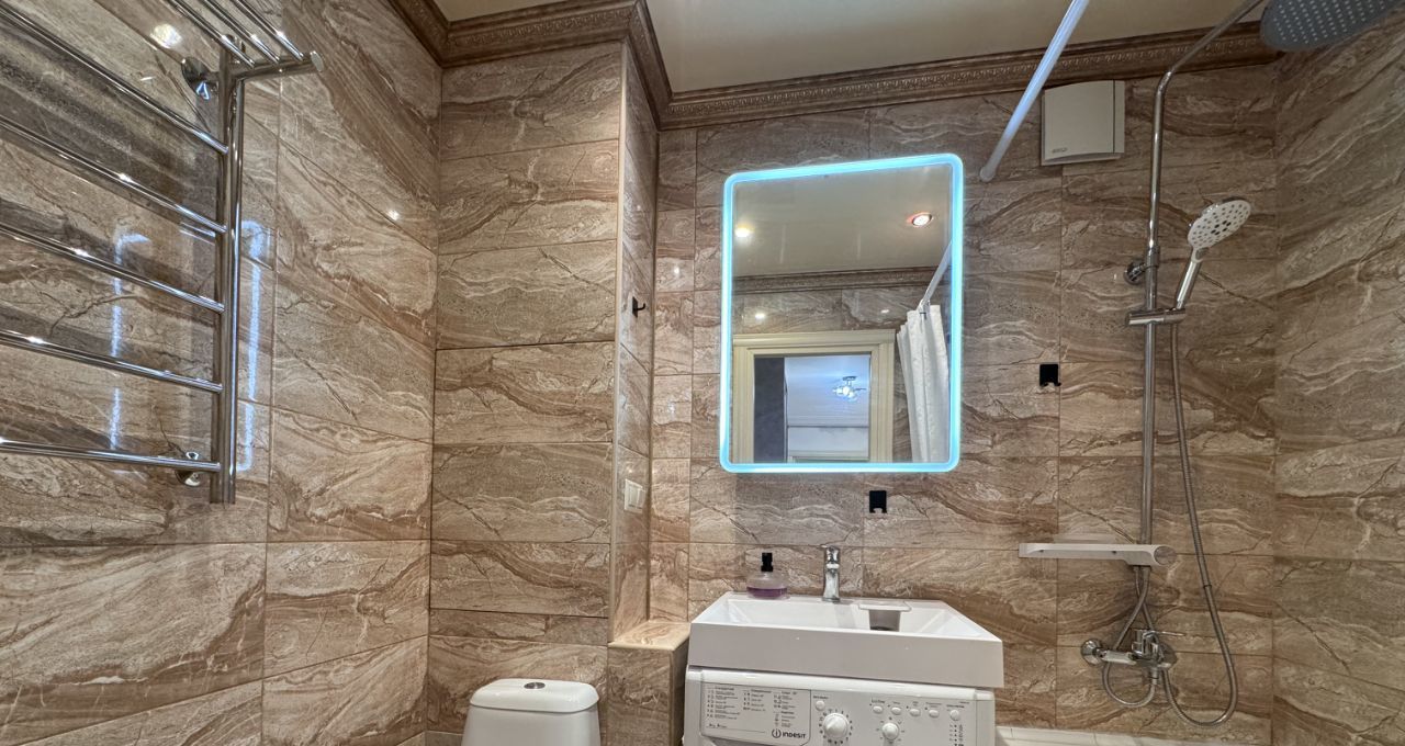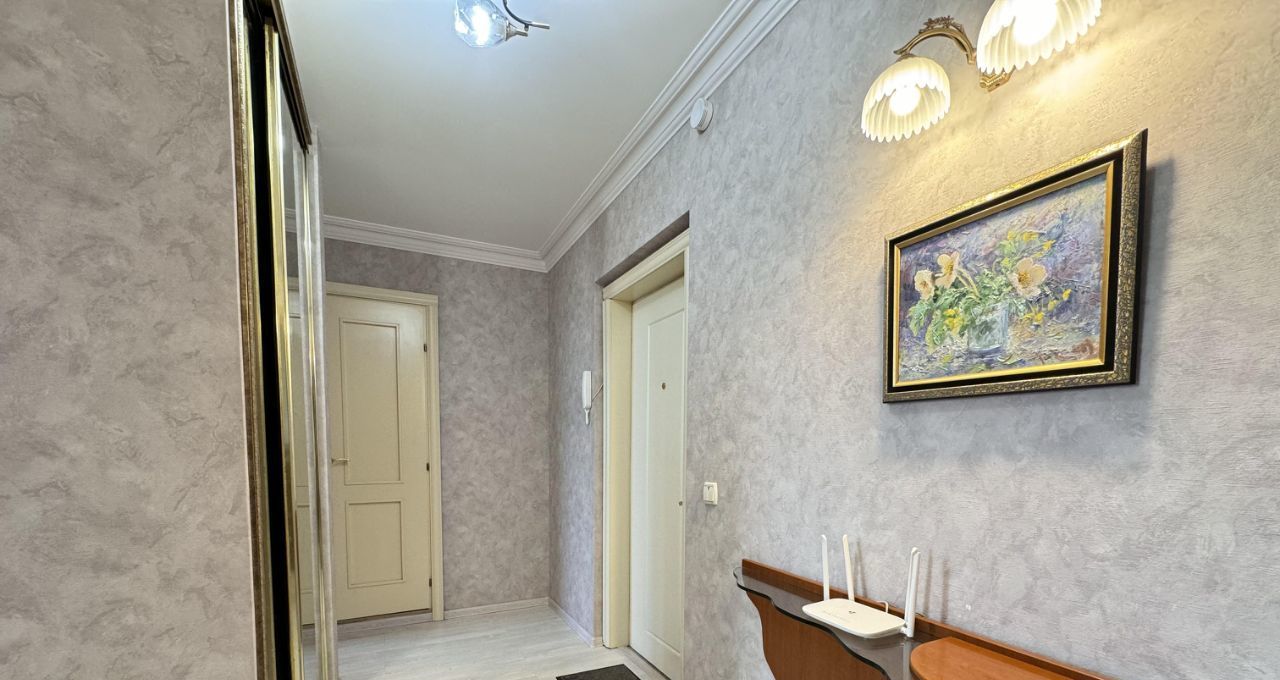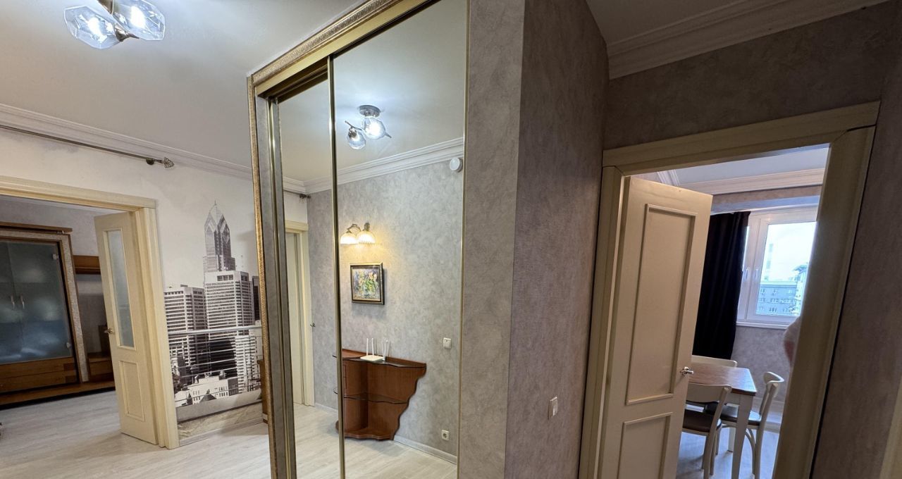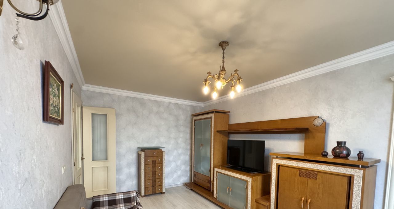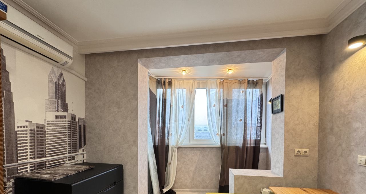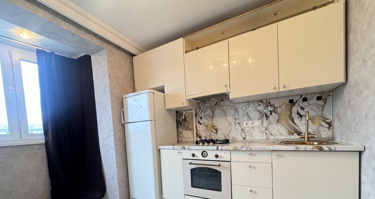 В квартире сделан опрятный ремонт, что создает атмосферу уюта и комфорта. Просторная кухня и комнаты обставлены необходимой мебелью, поэтому можно сразу заехать и жить. Из техники в наличии кондиционер, холодильник, телевизор и стиральная машина. Санузел совмещенный, с ванной. Окна выходят как на улицу, так и во двор, поэтому в квартире всегда светло и уютно.