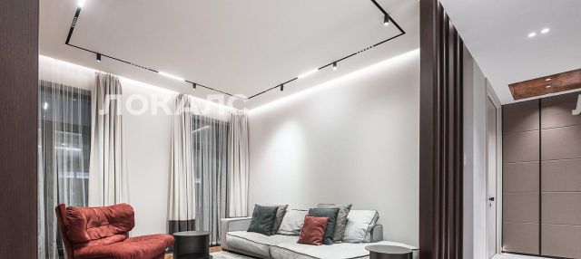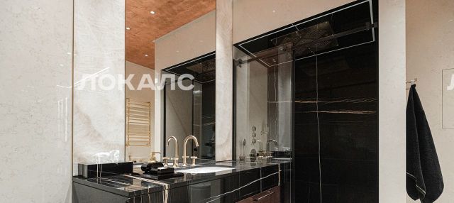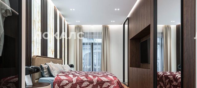 Выполнен дизайнерский ремонт. В санузлах установлена немецкая люксовая сантехника. Эксклюзивное покрытие потолков в мастер-зоне и холле. Шкафы из стекла и натуральной кожи, ТВ за черным стеклом в мастер с/у, техника премиум-класса, мебель Baxter, Minotti,