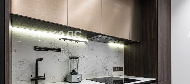 • Просторная зонированная кухня-гостиная: гостиная с ТВ-зоной и газовым камином и кухня-ниша со встроенной техникой премиальных брендов (Meile, Whirlpool).