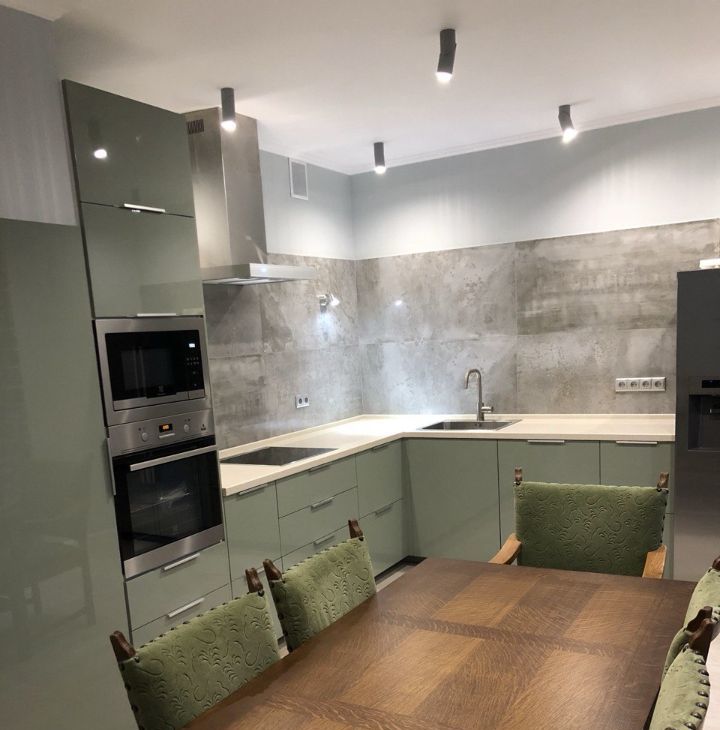 Кухня (16 кв.м): Современный дизайн без верхних шкафов (максимум воздуха) + вместительная кладовая. Техника Electrolux: плита, духовка, микроволновка, посудомойка. Большой холодильник side-by-side Siemens.