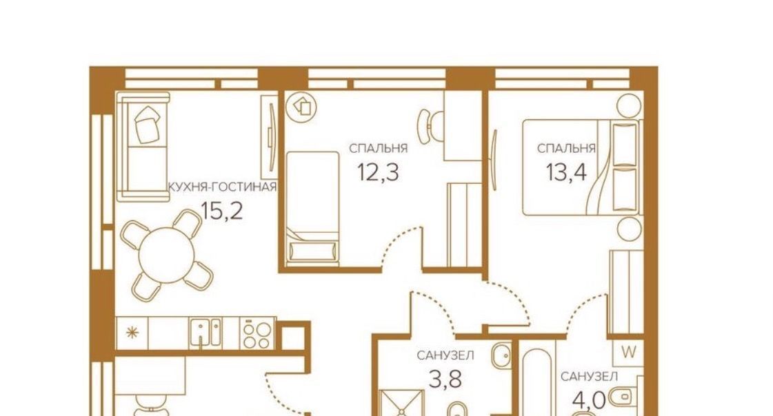 Квартира с тремя спальнями и огромными окнами. Квартира продается с новым и полностью завершённым ремонтом.