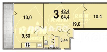 3-к кв. Москва Союзный просп., 8К1 (68.0 м²)